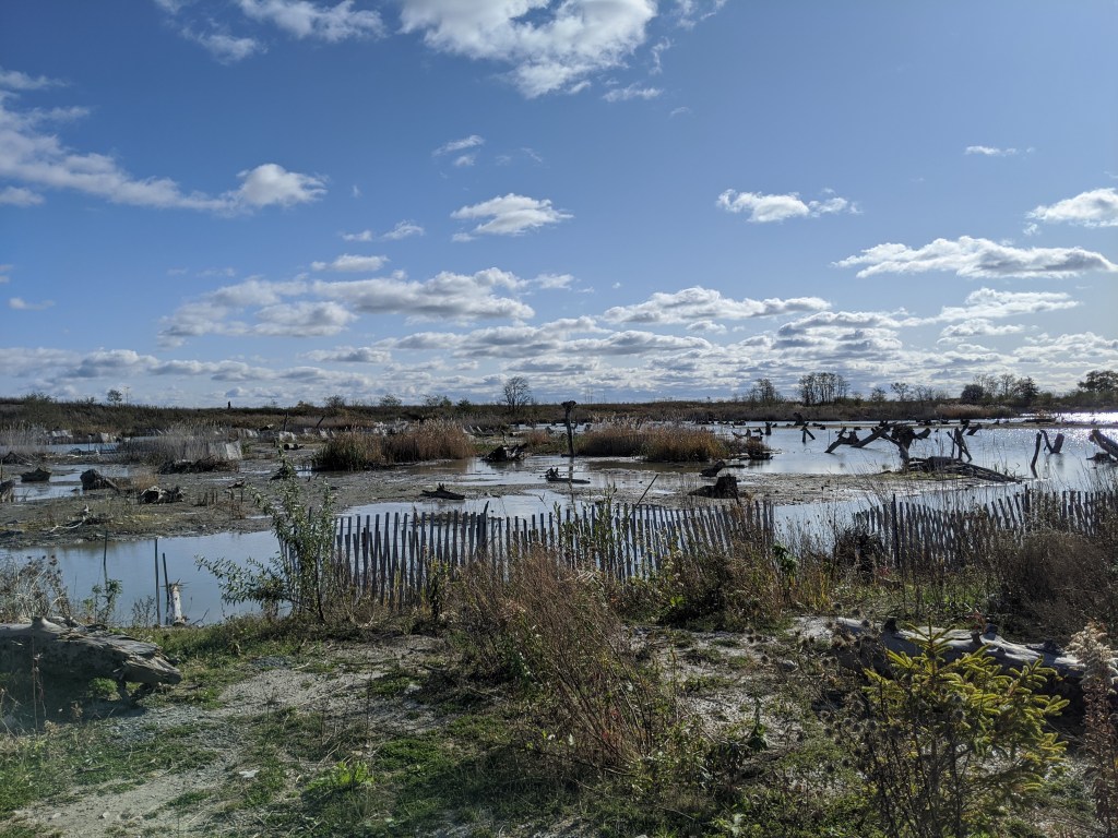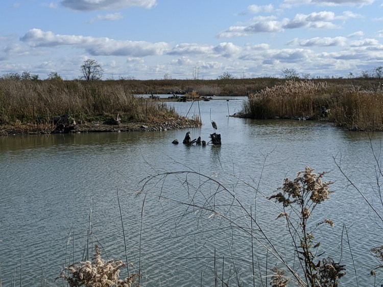 Late one night, I was making my way to our closest grocery store. My púca nudged me, reminding me of unfulfilled promises to take us for our weekly walk to the Woodbine Beach. Somewhat reluctantly, I detoured, wandering towards the beach. This day, I followed – he led me with a bread trail of glimpses of feeling, away from our usual route east along the boardwalk, instead towards the winding paths that explore the small, rocky western peninsula. We stopped here to listen to the waves, and to look out from the shoreline – to watch the lake and the sky disappear together into the dark. As I turned to leave, I scanned the shoreline of the Woodbine Beach, and it dawned on me – these were the remains of the Ashbridge Marsh. Suddenly struggling to catch my breath, I circled a large patch of standing water sprouting with long grasses. Momentarily, I stopped, to spin and take in my surroundings. All around me was land – it felt so huge, and this was only a sliver. Everything came into view, if only for a moment – the Wetlands would have stretched as far as I could see, marshlands instead of lake and buildings. What would that world have been like?