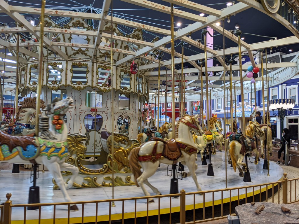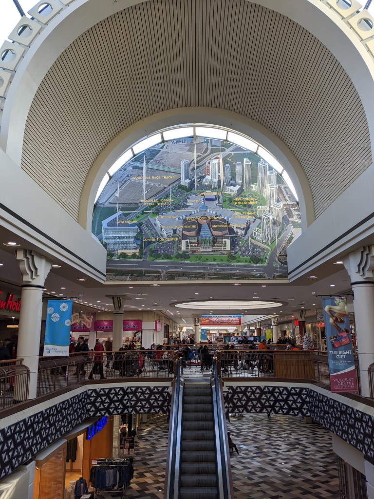 Recent changes to the area are evident to me: the Woodbine Centre is noticeably shinier, and previously empty storefronts are filled. The addition of animatronics, including motorized, rideable horses for children to tour the mall with, is a recent one. Something about the Woodbine Centre feels like it’s now pointing to something, whereas previously, it often felt neglected, as if left to sag.