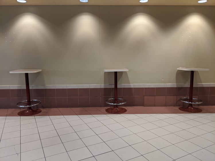 I chase her through corridors, passing mini cafes, smoothie stands, one-stop coffee shops.
